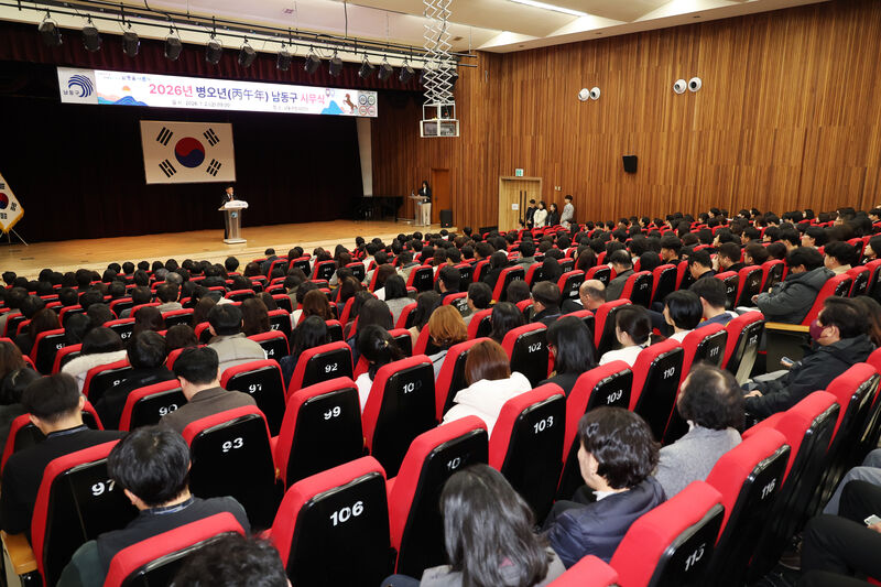 인천시 남동구는 2일 오전 9시 구청 대강당에서 구민과 직원 500여 명이 참석한 가운데 2026년 시무식을 열고 새해의 힘찬 출발을 알렸다.