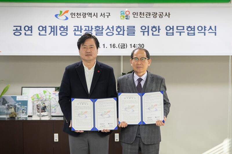 유지상 인천관광공사 사장은 “인천 관광 활성화를 위해 군·구와의 협력이 중요하다”라며, “이번 협약을 계기로 서구의 공연·문화 자원이 관광 거점으로 자리 잡을 수 있도록 협력하겠다”라고 전했다.