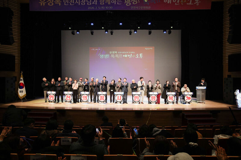 이어 서구문화회관과 검단복지회관에서 각각 진행된 ‘생생톡톡 애인(愛仁)소통’ 시간엔 유정복 인천시장과 강범석 서구청장을 비롯한 시ˑ구의원, 지역원로, 단체·주민 대표, 구민 등 1,000여 명이 참석했다. 인천시장은 이 자리에서 2026년 인천시 시정 운영 방향을 설명하고, 질의응답 시간을 가졌다.
