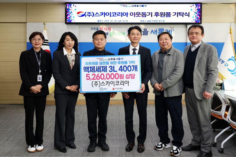 박종효 남동구청장은 2026년 2월 20() ()스카이코리아로부터 이웃사랑 실천을 위한 후원품(액체세제 3L 400)을 기탁받았다고 밝혔다.