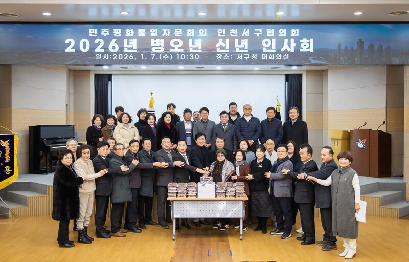 민주평화통일자문회의 인천서구협의회(회장 유정학)는 지난 7일 서구청 대회의실에서 자문위원서구청장내빈관계공무원 등 40여 명이 참석한 가운데 병오년 희망찬 새해힘찬 출발을 위한 ‘2026년 신년인사회를 개최했다.