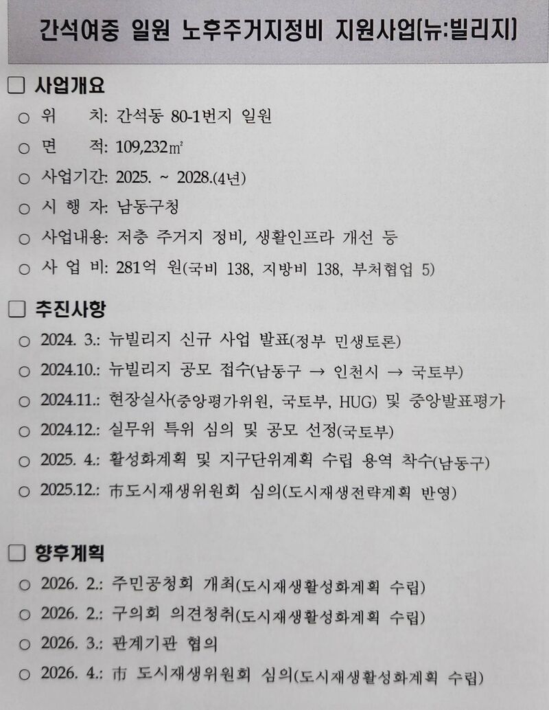 신동섭 시의원 남동구 간석3뉴빌리지 사업 진행