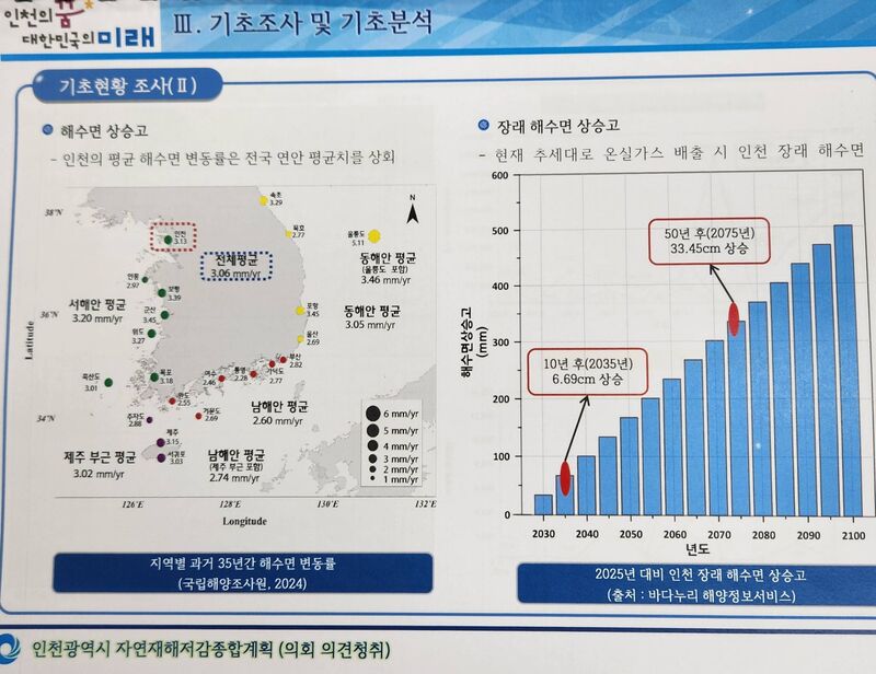 기후위기에 따른 해수면 상승과 항만시설의 꾸준한 확장주거단지의 확대 등으로 인천지역 해안은 변화를 겪고 있다복잡 다양한 이유로 해안선 변화와 침식이 발생하며 그에 따른 피해도 심화하고 있는 상황이다