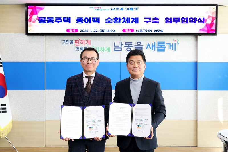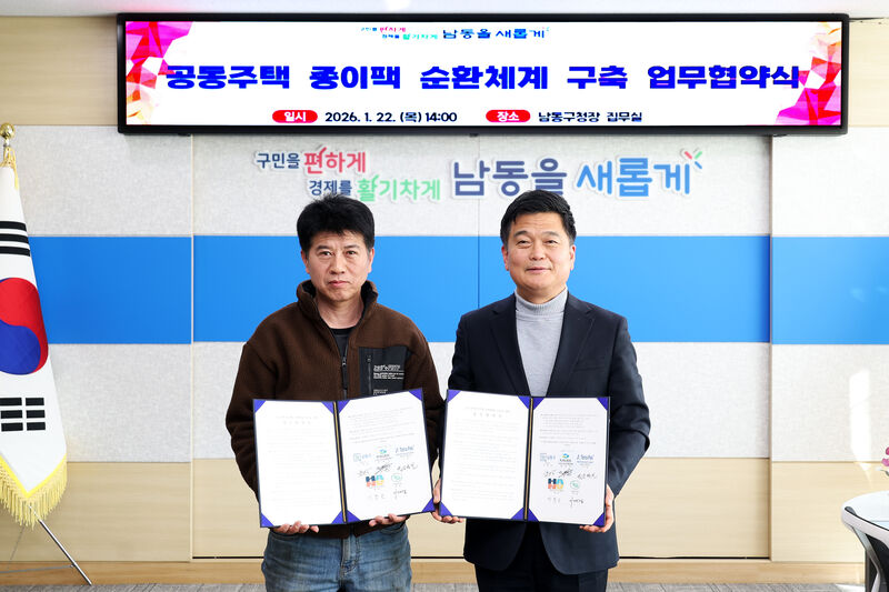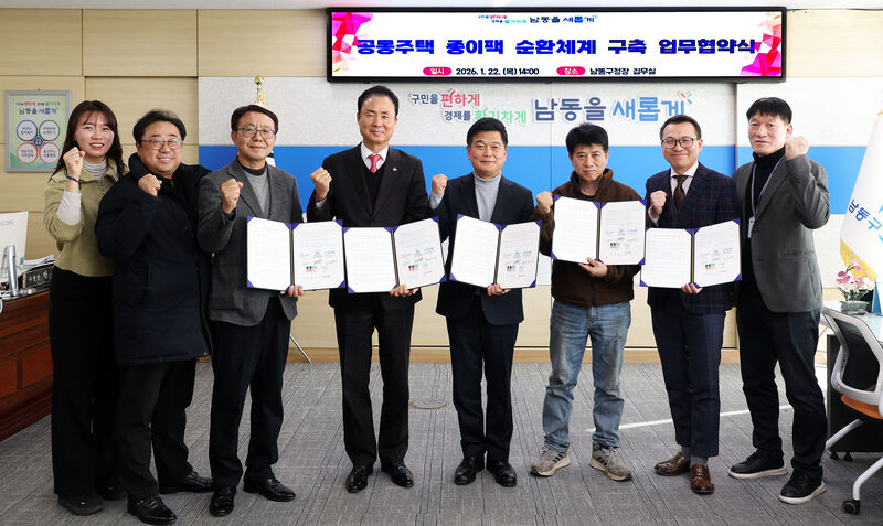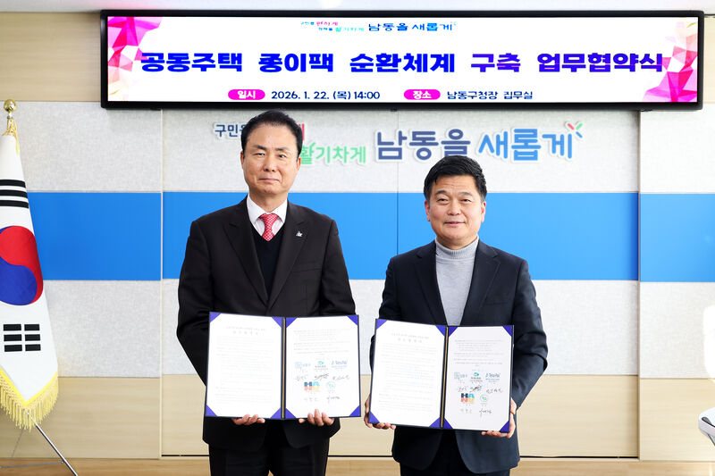 인천시 남동구(구청장 박종효)는 최근 자원순환 관련 기관‧기업과 공동주택 종이팩 순환 체계 구축을 위한 업무협약을 체결했다고 27일 밝혔다