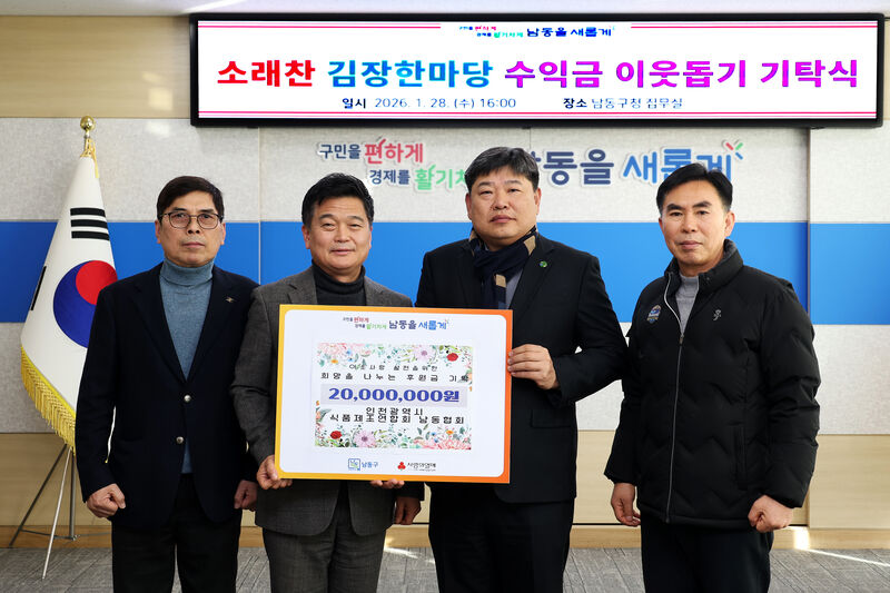 인천시 남동구(구청장 박종효)는 최근 ()인천식품제조연합 남동구협회로부터 ‘2025년 남동구 소래찬 김장한마당’ 판매 수익금 총 2천만 원을 기탁받았다고 30일 밝혔다.